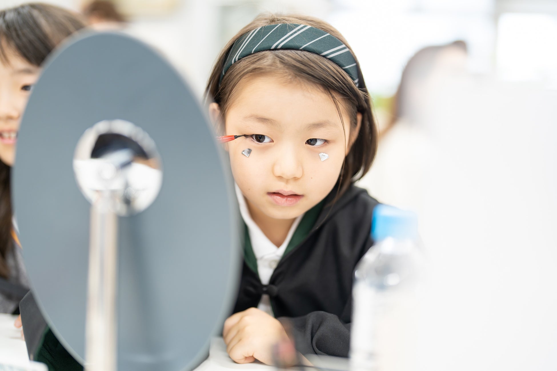一生懸命にアイライナーを引く子どもたちや、お母さんに手伝ってもらう子も。皆で楽しくアイライナーを体験しました。