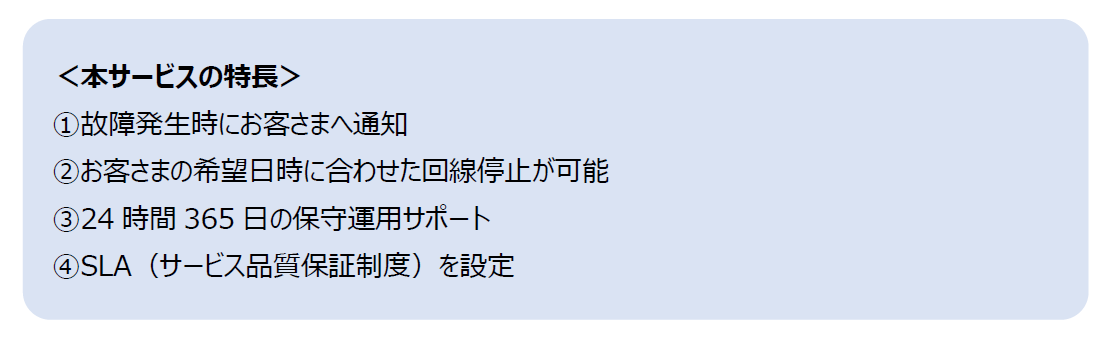 近年、クラウド活用の増加、在宅勤務などワークスタイルの多様化により、インターネット接続サービスに対するニーズも多様化しています。特に、安価でありながら保守運用サポートが受けられるサービスを求める多くの声をいただいております。