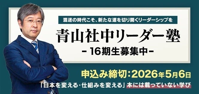 青山社中株式会社(本社:東京都港区、代表取締役筆頭代表CEO:朝比奈一郎)は、「青山社中リーダー塾」を2026年度も開講し、第16期生の募集受付を開始いたしました。「青山社中リーダー塾」は、 「国や社会のことを考え、変革に向けた行動を起こすことができる人材を育成する」を目的に、激動の時代を切り開き、世界へ通用する能力を身に付けるリーダー養成塾です。塾頭は、青山社中代表の朝比奈一郎が務めています。3月より、塾頭 朝比奈による模擬授業や、現役塾生/卒塾生による交流会を順次開催いたします。