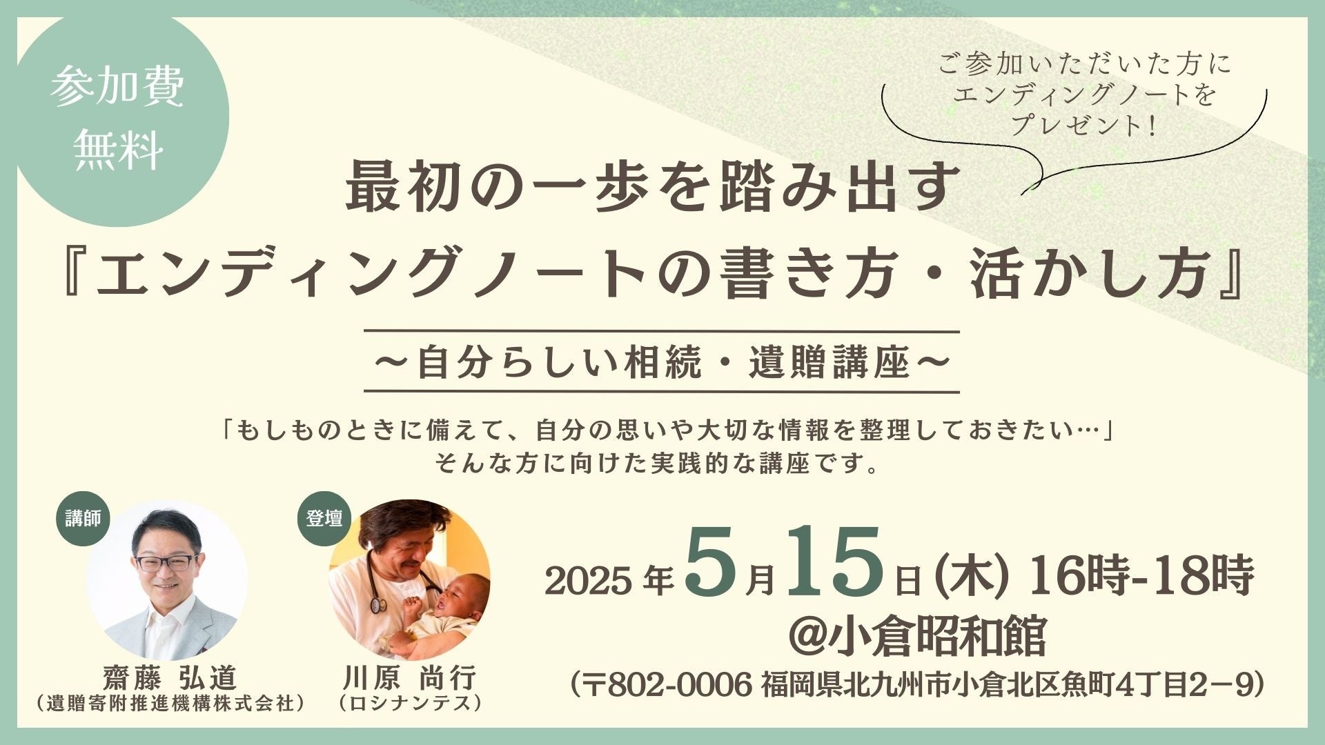 最初の一歩を踏み出す『エンディングノートの書き方・活かし方』~自分らしい相続・遺贈講座~を5月15日に開催、北九州の映画館で