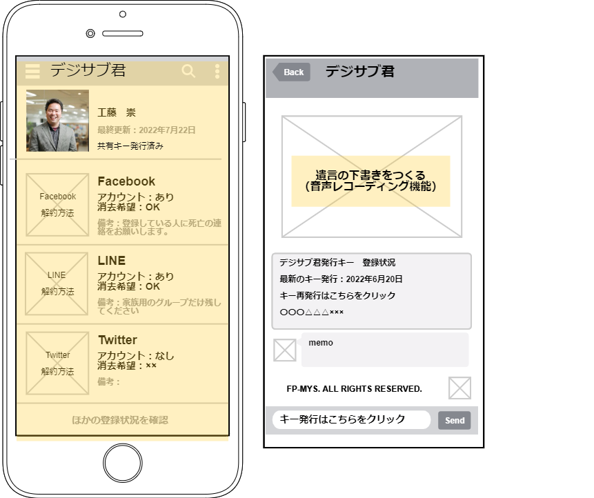 将来的にはレタプラの音声レコーディング機能をつけたり、弊社で解約代行するようなサービスに発展させて参ります。当社はこれまで、相続資産の共有から家族のトラブルを解決することを理念として活動して参りました。サブスク君は180℃逆です。急に亡くなったとき、誰にも共有したくない生前の情報を、しっかりと消去する。そのような習慣を作っていこうと考えております。