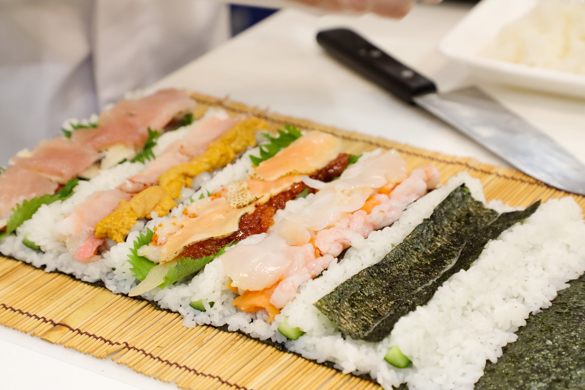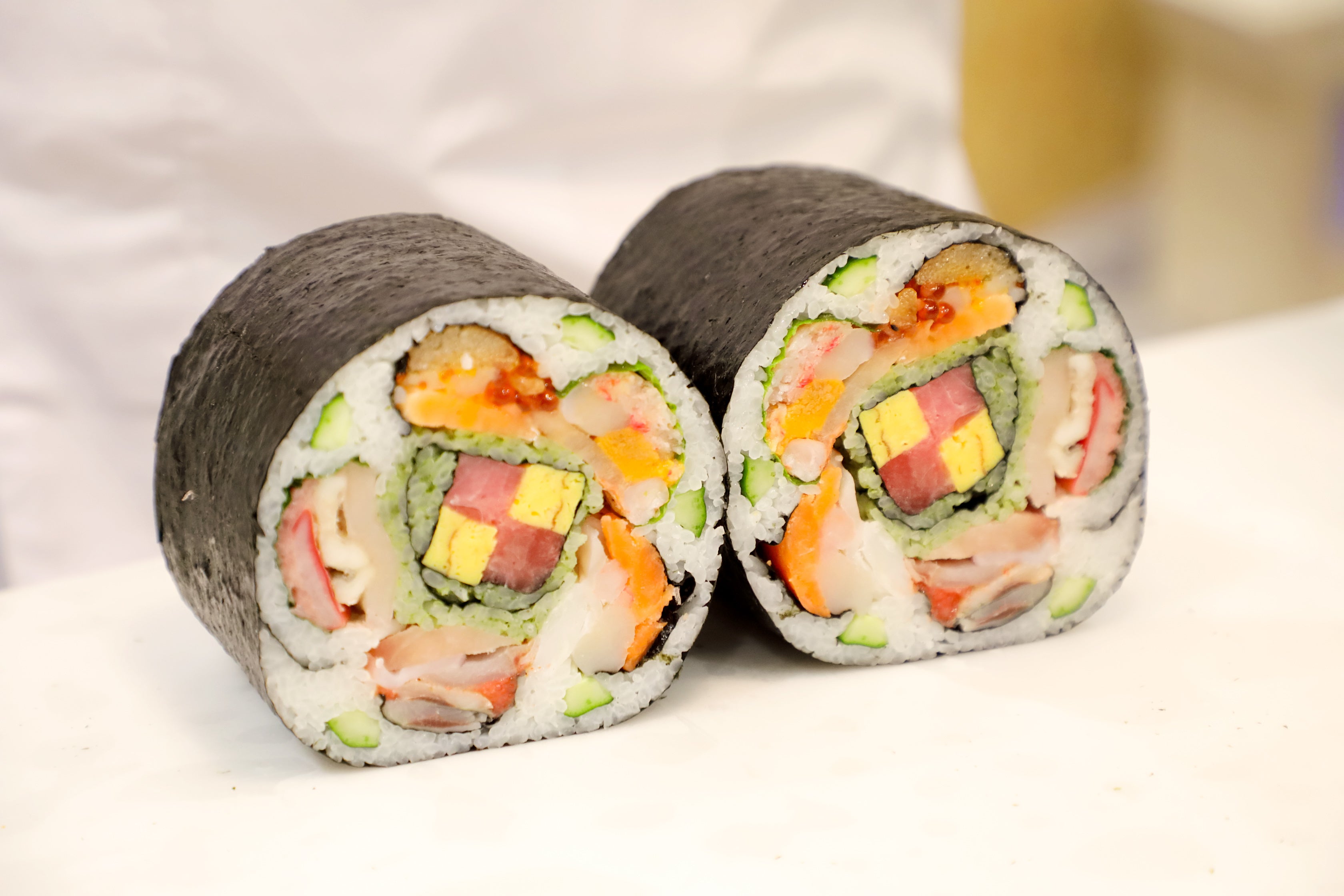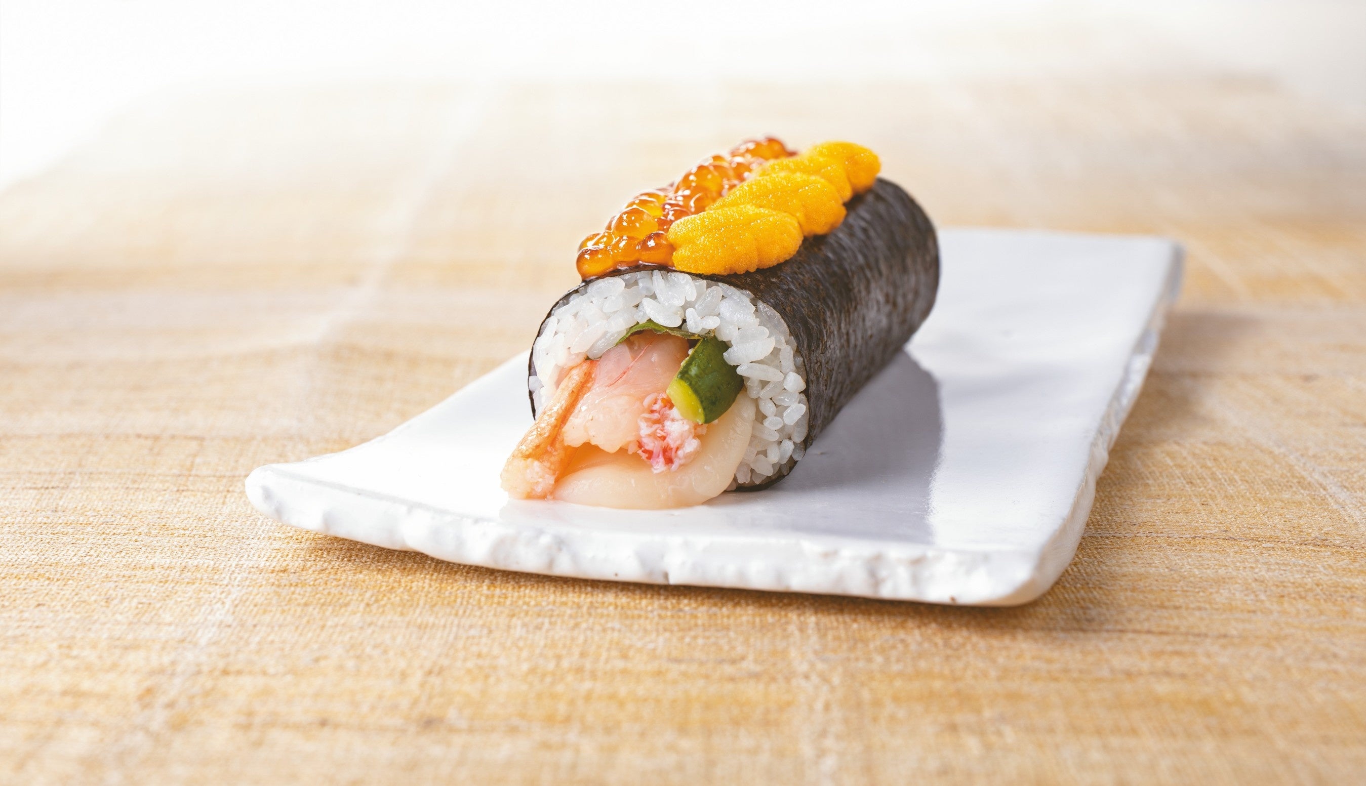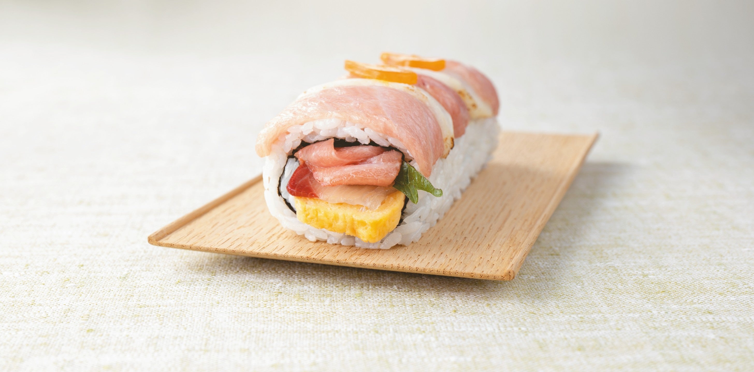 ひと巻きで食の宝庫をぐるっと一周 ・長崎県産本まぐろ ・長崎県産炙りくえ ・出汁巻 ・黒瀬ぶり ・福岡加工明太子 ・長崎産からすみ など