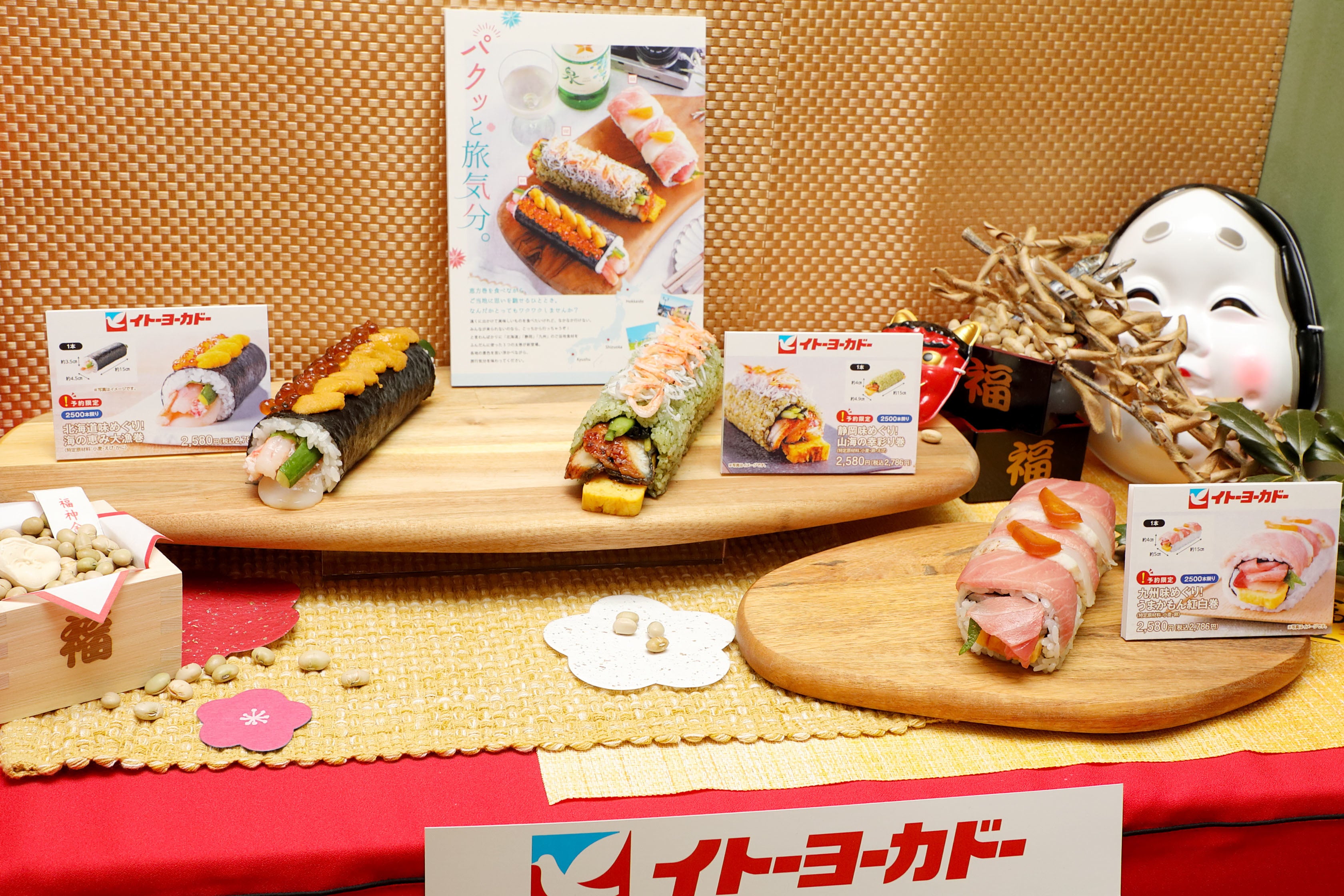 株式会社イトーヨーカ堂(代表取締役社長:三枝富博/所在地:東京都千代田区)は、恵方巻のご注文を受 け付けしており、好調な予約状況となっております。毎年人気の定番主力商品のほか、料理人監修の恵方 巻や海鮮、素材にこだわった贅沢な予約限定商品など、バラエティ豊かな恵方巻メニューを御用意してお ります。今回、恵方巻の試食会を行いました。