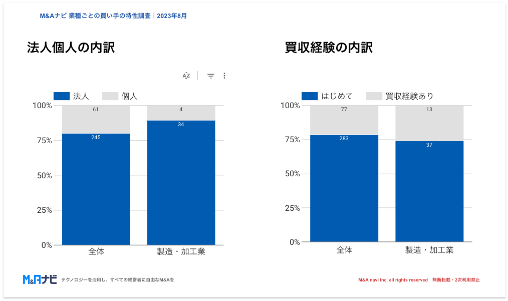 そのため、統計的に母集団の特性を示すものでは必ずしもなく、他のM&Aプラットフォームサービスの特性を説明するものでもないことを、あらかじめご了承ください。