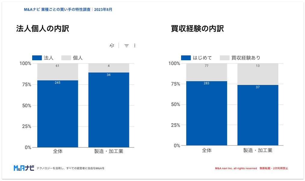 ・M&Aナビに掲載されている案件にリアクションをした買い手の属性情報を集計しています。