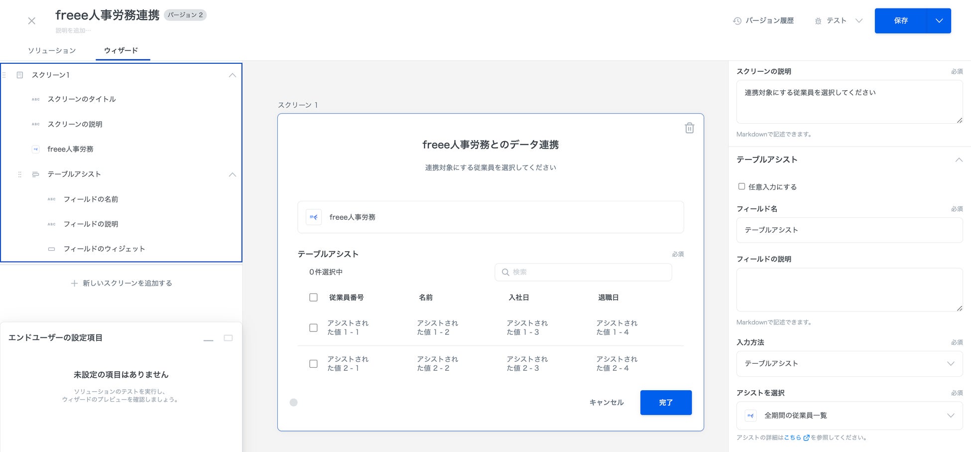 特に「テーブルアシスト」のパーツについては、外部連携先のデータをテーブル形式で表示することができ、チェックボックスをONにしたデータのみを連携対象とできるという、特徴的な機能でした。
