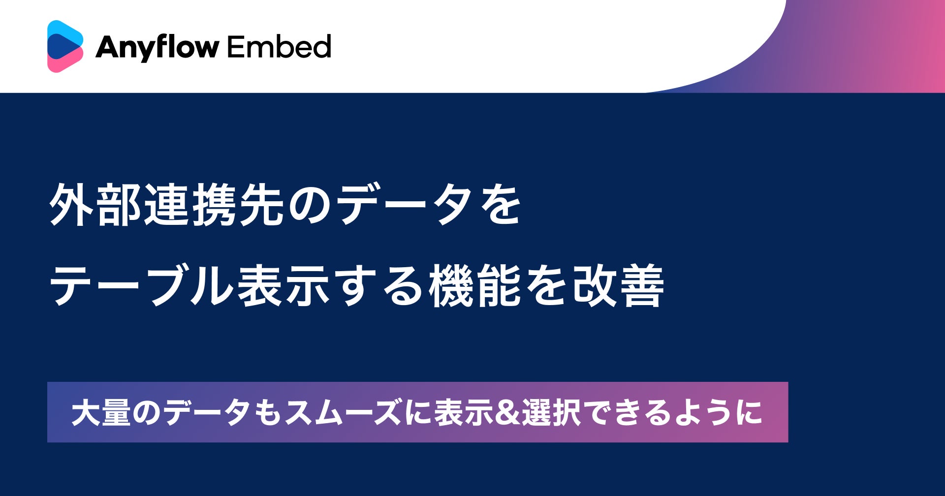 Anyflow株式会社(本社:東京都千代田区、代表取締役CEO:坂本 蓮、以下Anyflow)は、SaaS事業者向けのAPI連携プラットフォーム「Anyflow Embed」について、外部連携先のデータをテーブル表示する際の体験を改善したことをお知らせします。