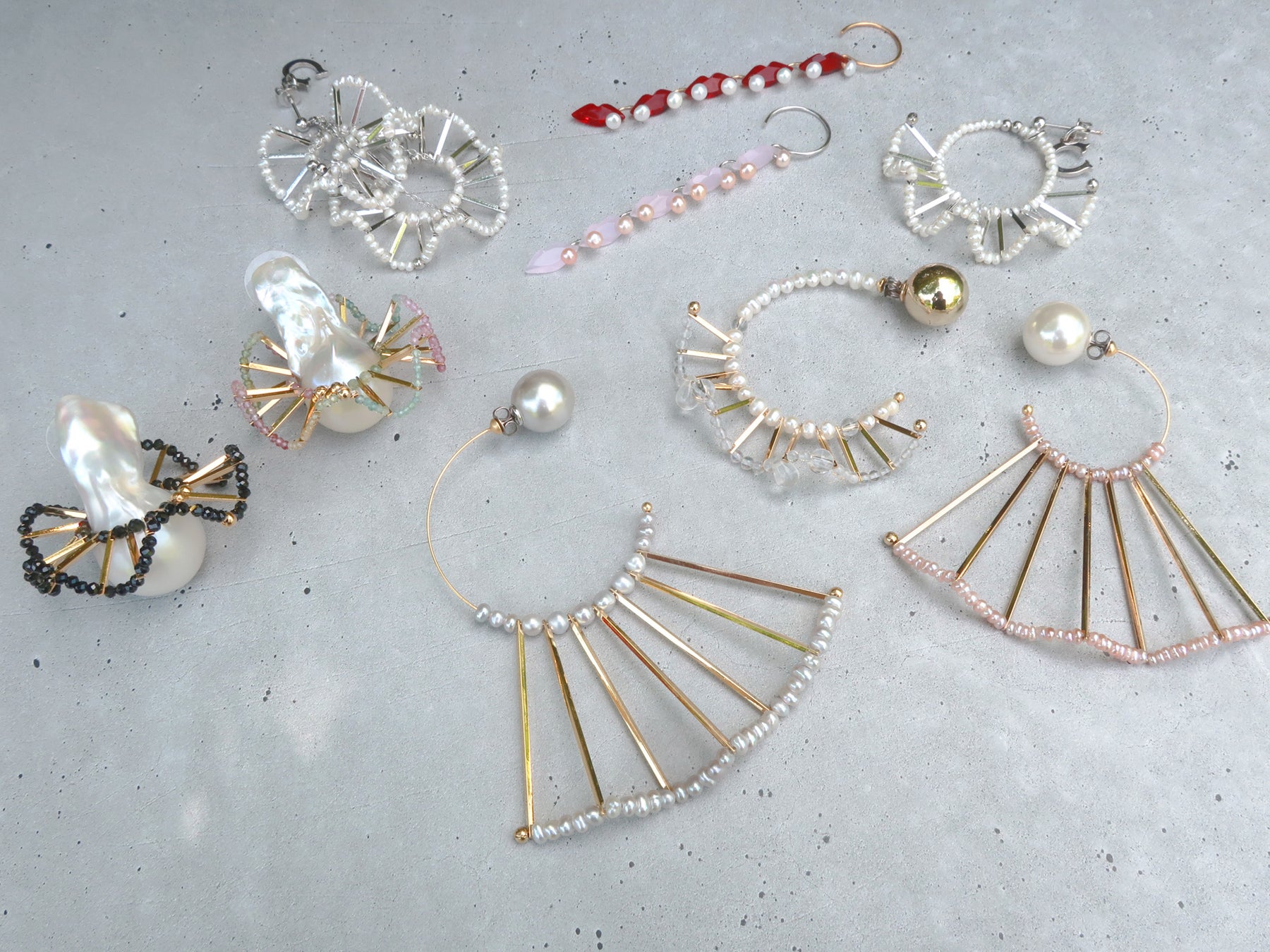 ファッションのパターンから着想を得たフリルパールシリーズは世界初のデザイン。トルソーにネックレスを着用させ、動きを見ながら制作することで立体感のあるフリルを表現しています。ホワイト、グレー、サクラ色の淡水パールや個性豊かなバロックパールに、ミスティックトパーズやブラックスピネルなどの天然石を合わせた、上質かつ遊び心のあるジュエリーは、オケージョンからストリートファッションまでシーンレスに楽しめるアイテムです。