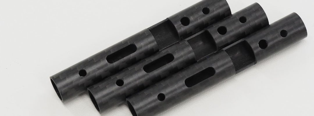 カーボン丸パイプを製作できます。長さ、外径を指定するだけでカット可能。さらに設計データを入稿すると「貫通穴」「長穴」「フライス加工」でオリジナル丸パイプが作れます。