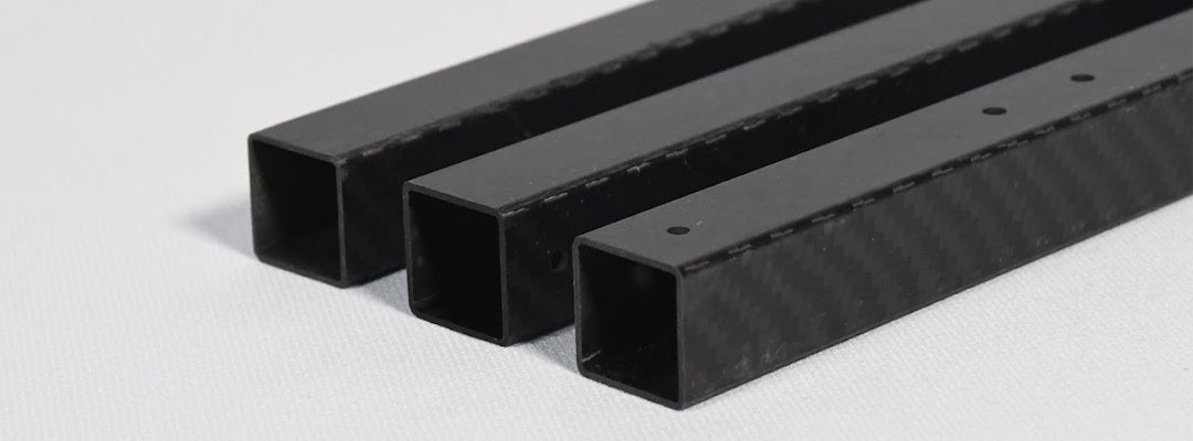 カーボン角パイプを製作できます。30種類の規格の中からご自由の長さでカット可能。さらに設計データを入稿すると「貫通穴」「長穴」でオリジナル角パイプが作れます。