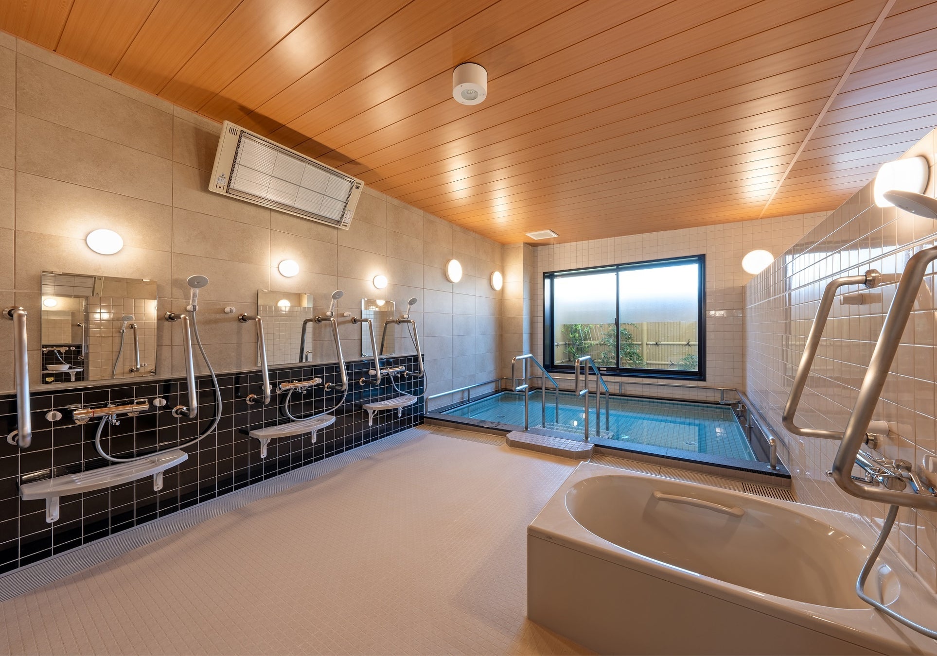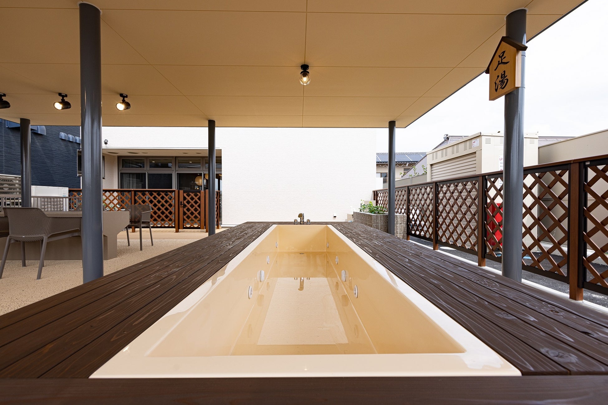 施設の特徴でもある広々とした屋外スペースでは、足湯や園芸、バーベキューをはじめ外で食事など、さまざまな活動が楽しめます。健康効果やリラックス効果などが期待できる日光を感じながらお客さまの元気を引き出す場所として活用していきます。館内にはお客さまのご家族が宿泊できる特別室もご用意しています。