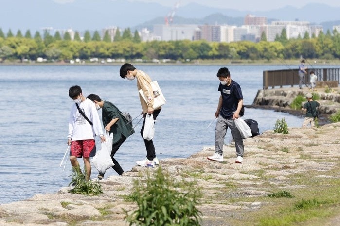 試合前に琵琶湖畔を中心としたウカルちゃんアリーナ周辺のクリーンウォーク活動を実施。ご参加いただいた方には、各日先着200名様にCLIMAX GAMES記念Tシャツをプレゼントしました。