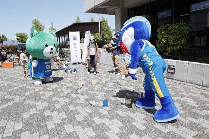 滋賀県産のヒノキ材を使ったニュースポーツ「レイクッド」の体験コーナーを実施。木の棒を投げて的を倒すシンプルな競技を、子どもから大人までたくさんの方が楽しんでいました。