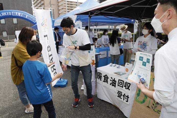 CO₂削減の観点から、ご家庭の調理などで生じた使用済みの食用油を会場のブースで回収し、バイオディーゼル燃料としてリサイクルする活動を実施しました。ペットボトルに入れて廃食用油をご持参いただいた方に、ブースにて「ミニマグニー」をプレゼントしました。