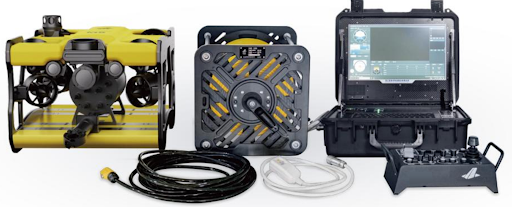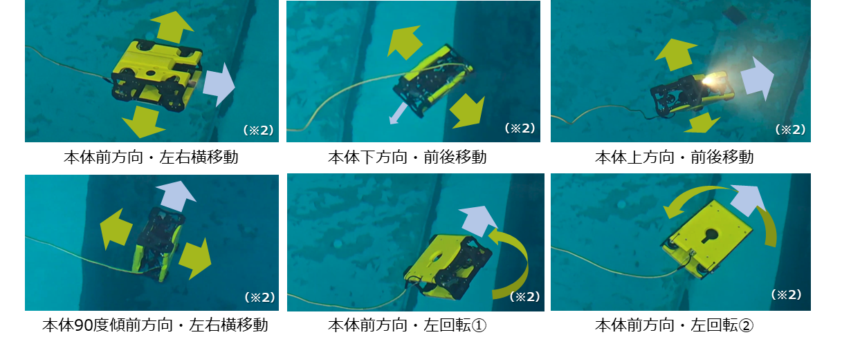 360度回転できるROVは小型のものが多い中、重量17kg、最大深度150mのスペックをもつROVでは珍しいものとなります。