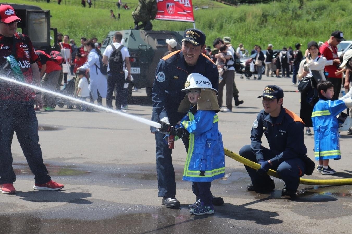 憧れのパトカーに乗車してサイレンを鳴らしたり、消防士の衣装をつけて放水体験をしたり、普段間近で見ることのできない自衛隊の特別車両の上に立って写真撮影ができるなど、ただ見るだけではない体験型の展示ということもあり、常に車両の周りには人だかりができていた。「子どもたちにまた来たいと思ってもらえるような、思い出に残る1日になってほしいと思っています」と語るスタッフの視線の先には、たくさんの子どもたちの笑顔があふれていた。