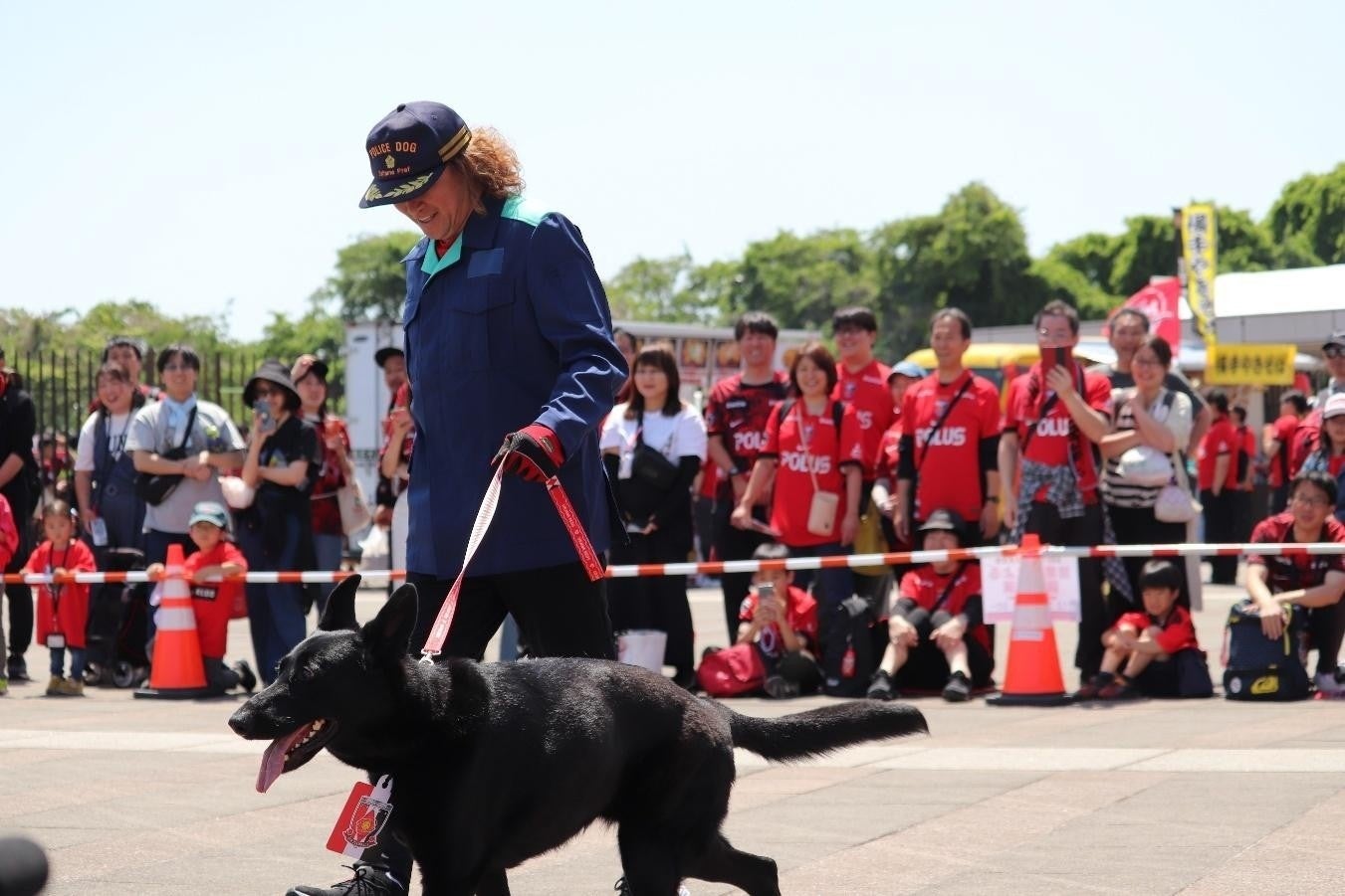 当日の体験イベントの一つ、「警察犬による訓練実演」には、”野人”の愛称で親しまれ、かつて日本代表を初のW杯に導いた立役者である、レッズ・ブランドアンバサダーの岡野雅行氏も参加。この日は、警察犬のパートナーとして訓練を手伝っていたのだが、どちらかというと警察犬に主導権を握られがちな岡野氏の姿に、会場は大盛り上がり。多くの来場者がその様子を見に集まり、警察犬と岡野氏に拍手を送っていた。