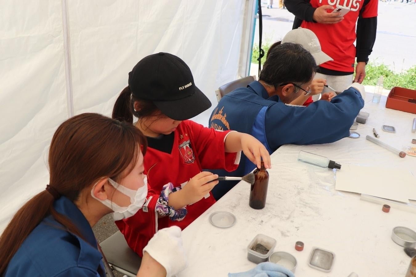 その他、実際に自分の指紋を採取できる「指紋採取体験」や、浦和レッズのオフィシャルパートナーである国大セミナーが開催する「出張理科実験教室」では、レジンを使って自分だけのオリジナル浦和レッズキーホルダーを作るワークショップも行われた。ただ体験するだけではない、楽しみながら学べるワークショップということで、付き添う保護者も興味津々で見入っていた。スタジアムの各所で様々なイベントを行っていることもあり、イベント開始時間から取材を行っているにも関わらず、気が付けばあっという間に 3 時間が過ぎていた。『GoGoReds!デー』のメインイベントはもちろんサッカー観戦だが、試合前に様々な楽しみ方を提案してくれる、まさに1日を通して埼玉スタジアムで遊びつくすイベントといえるだろう。
