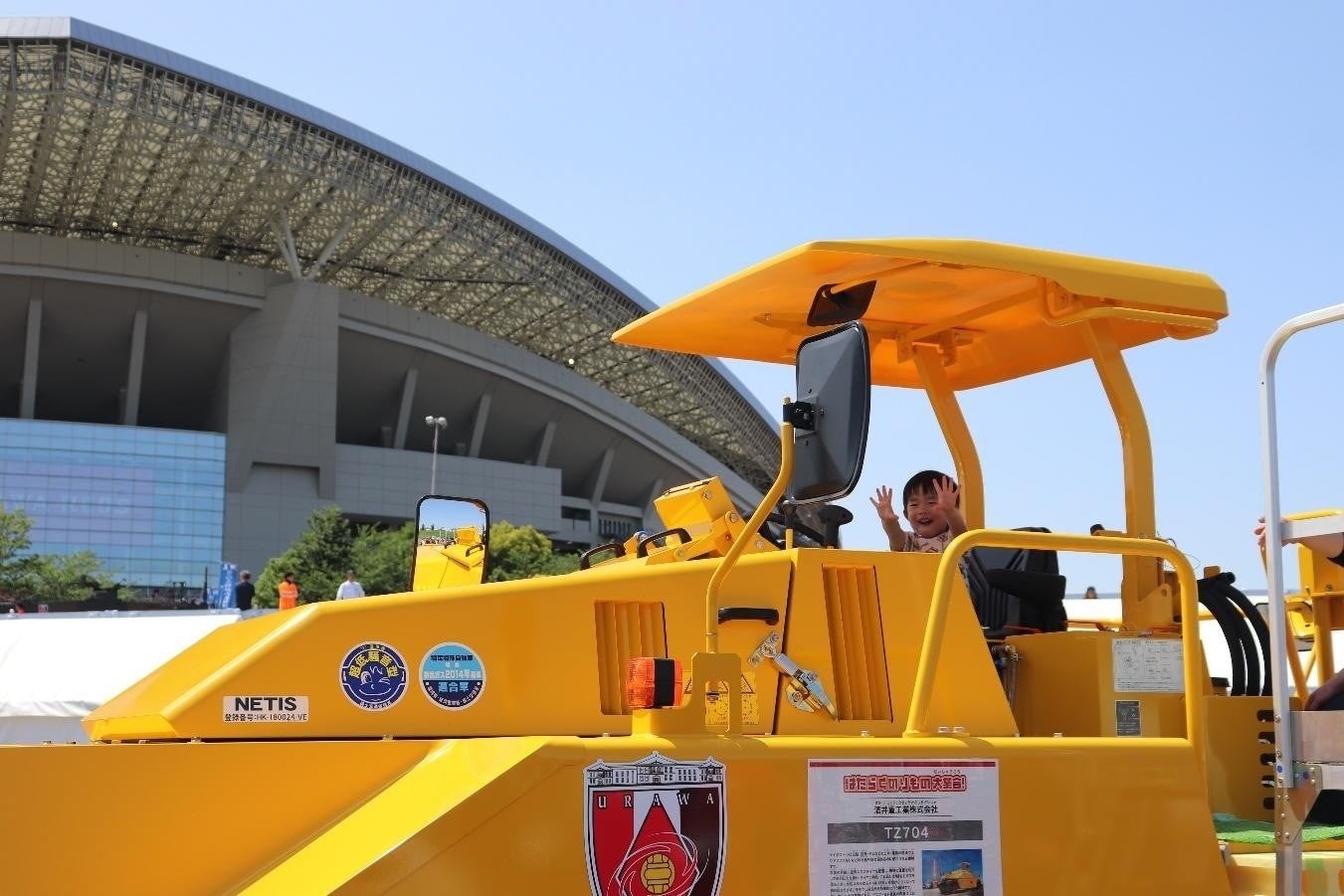 「”はたらくのりもの大集合”は開催するたびに車両のラインナップが増えていくので、毎回クラブ史上最大級といってもいいくらいですね」と話すのは、イベントを企画したクラブスタッフの一人。確かに、ここがサッカーの試合会場であることを忘れそうになるほど、車両のラインナップや予想を上回る規模の大きさに感動を覚える。