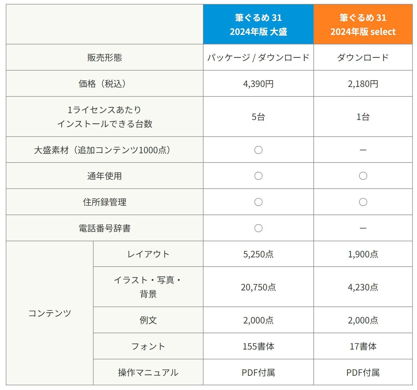 その他、各動作条件詳細および『筆ぐるめ 31 2024年版 大盛』シリーズ 素材点数については、筆ぐるめ公式サイトにてご確認ください。