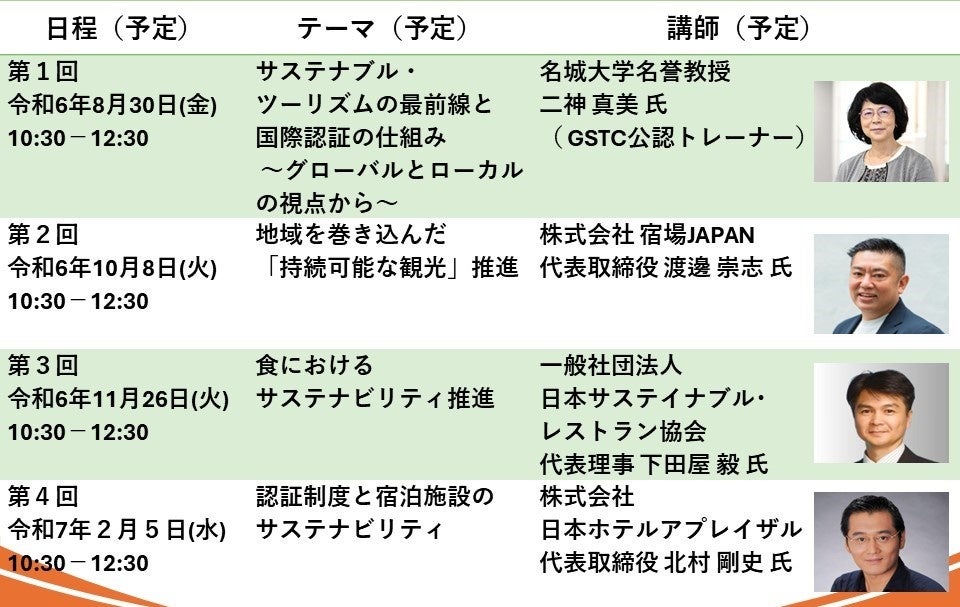 第1回目となる本セミナーは、名城大学名誉教授 二神真美氏を講師にお招きし、サステナブル・ツーリズムの国際的な動向と国内における取組の現状について包括的にご講演いただきます。セミナーでは基調講演の他、パネルディスカッションや参加者同士のワークショップを交え、本テーマへの理解を深めていきます。この機会をぜひご活用ください。