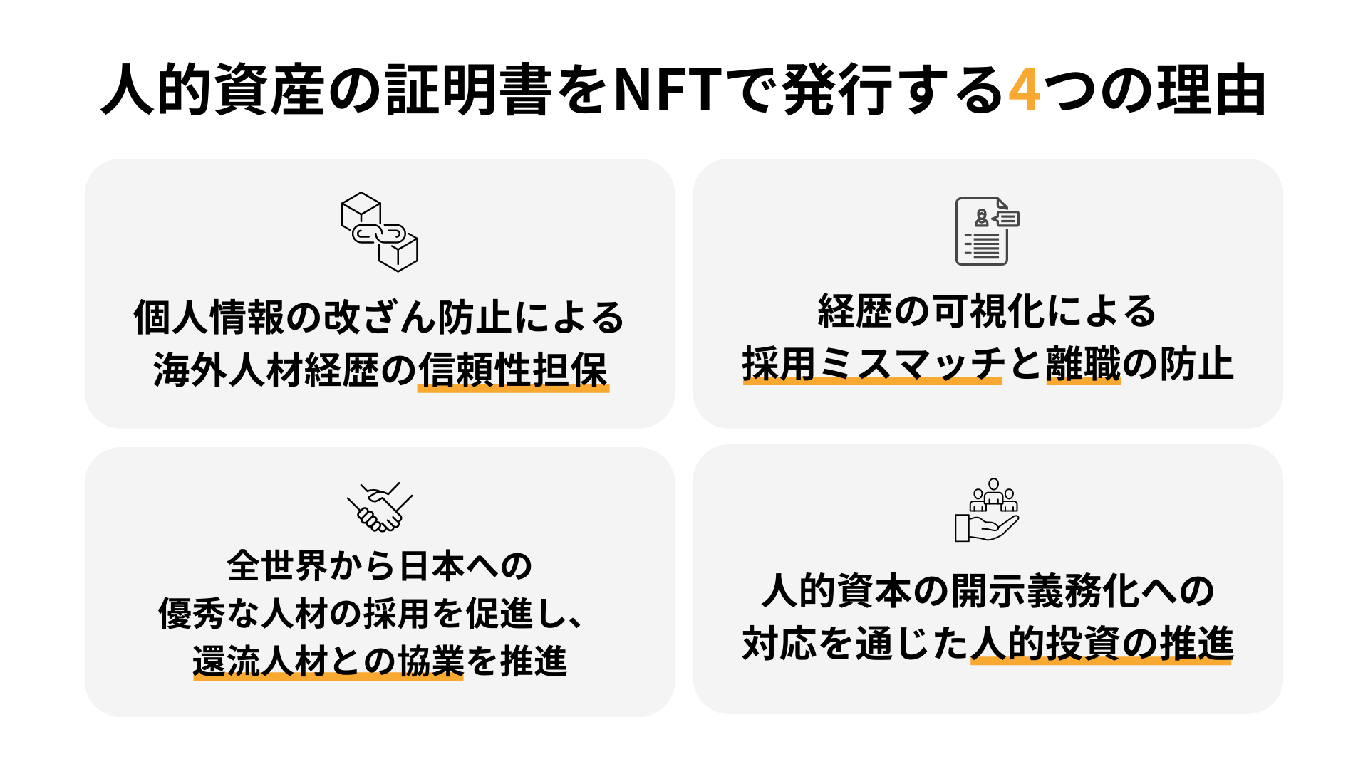 1. 個人情報の改ざん防止による、海外人材経歴の信頼性担保