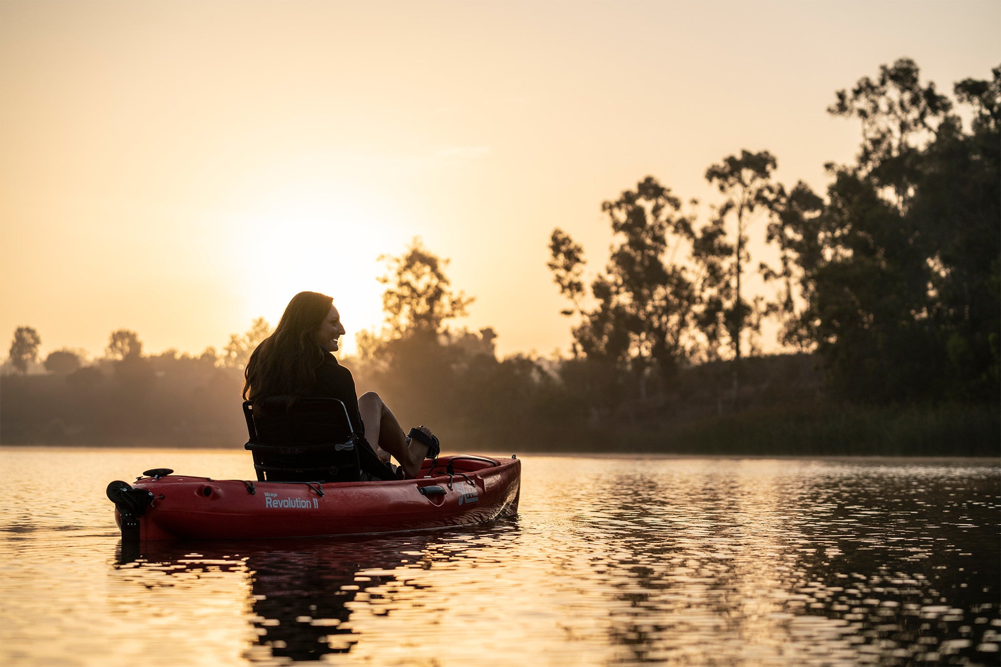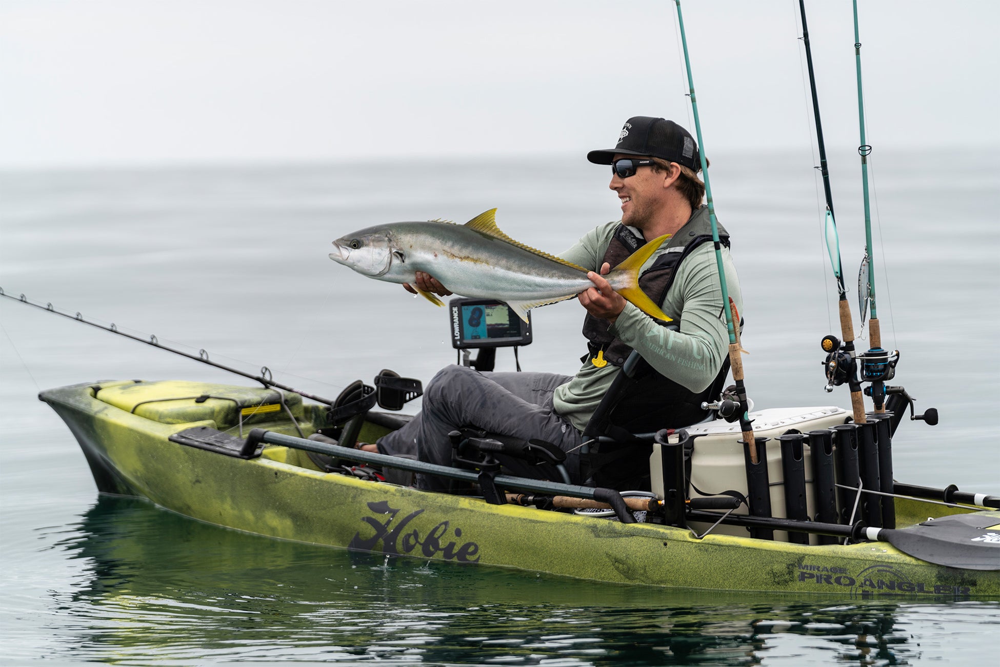 HOBIE社大人気の足漕ぎフィッシングカヤック「Pro Angler」体験。フリーハンドで360°お好きな方向へ進むことができます。足漕ぎフィッシングカヤックで快適な釣りライフを体感いただけます。