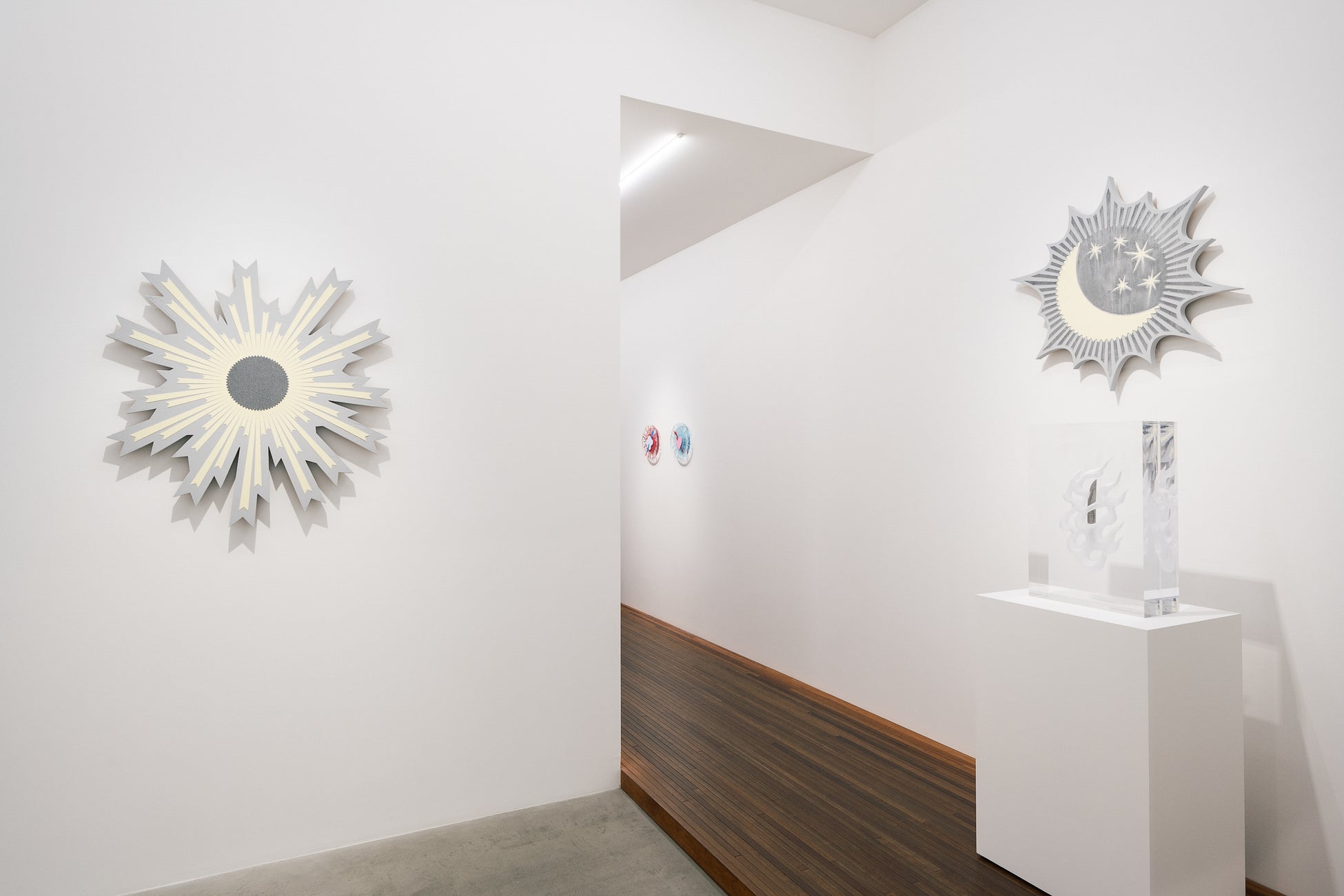 本展「Under the Sun and Moon」は、舘鼻則孝のKOSAKU KANECHIKAでの10度目の個展となり、過去の展覧会同様に、日本文化を現代の視点から再考することで得られた文化的な価値観が反映されています。本展の中心となる日光と月光をモチーフとした絵画作品や彫刻作品は、仏教における仏像の安置形式のひとつ「薬師三尊」の左右に位置する日光菩薩・月光菩薩の持つ「日輪」と「月輪」から着想を得て制作されたものです。また、本展は記念すべき10度目の個展だということもあり、KOSAKU KANECHIKA開設以前の作品から同画廊では未発表の作品まで、過去のアーカイブも展示公開いたします。