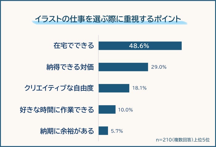イラストの仕事を選ぶ際に重視するポイントは「在宅でできる」