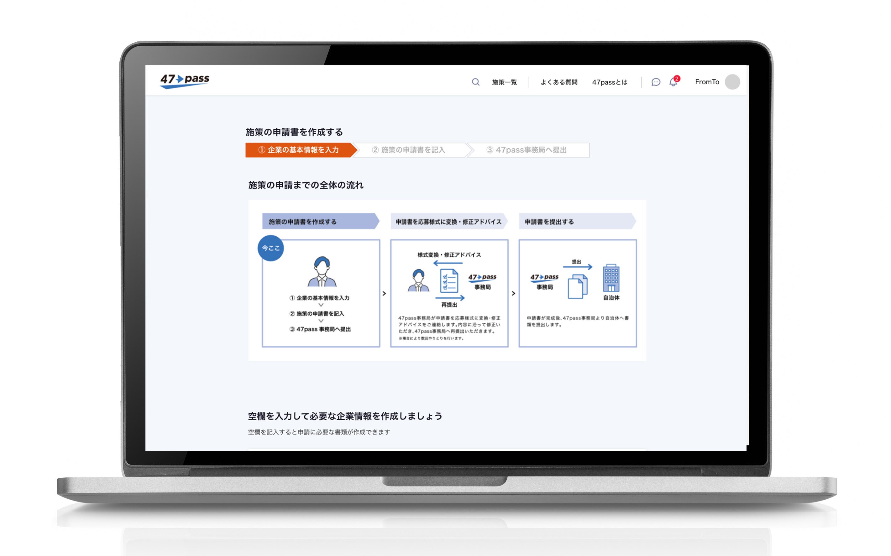 「47pass」は日本全国のスタートアップ企業をはじめとした中小企業向けの自治体施策を掲載する、施策情報プラットフォームです。