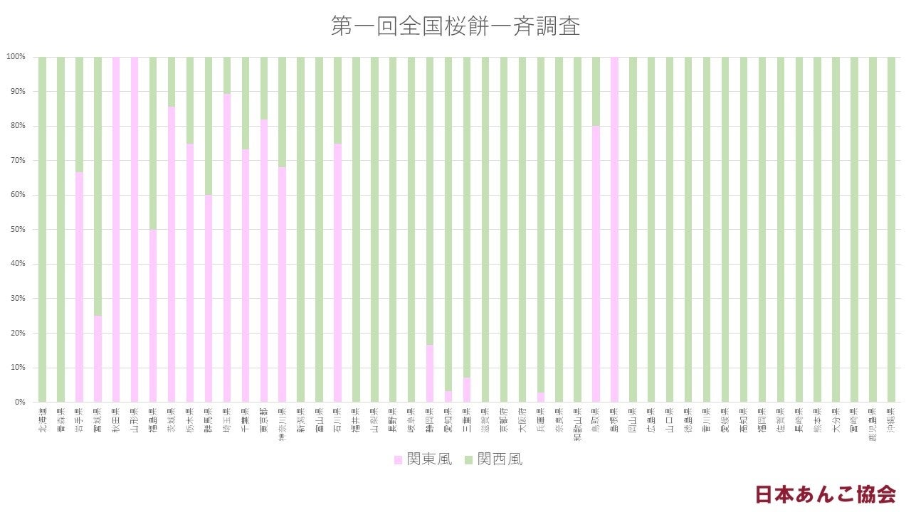 全国10000名を超えるあんこ愛好家団体が桜餅は関東風か関西風か都道府県別に一斉調査を実施