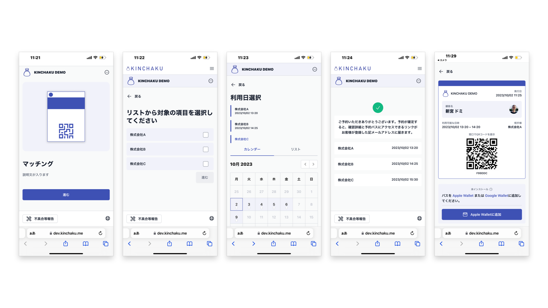 マッチング確定後、利用者が面談の当日に受付で提示するマッチングパスを受け取ります。このデジタルパスはApple WalletやGoogle Walletといったモバイルウォレットに簡単に追加できます。