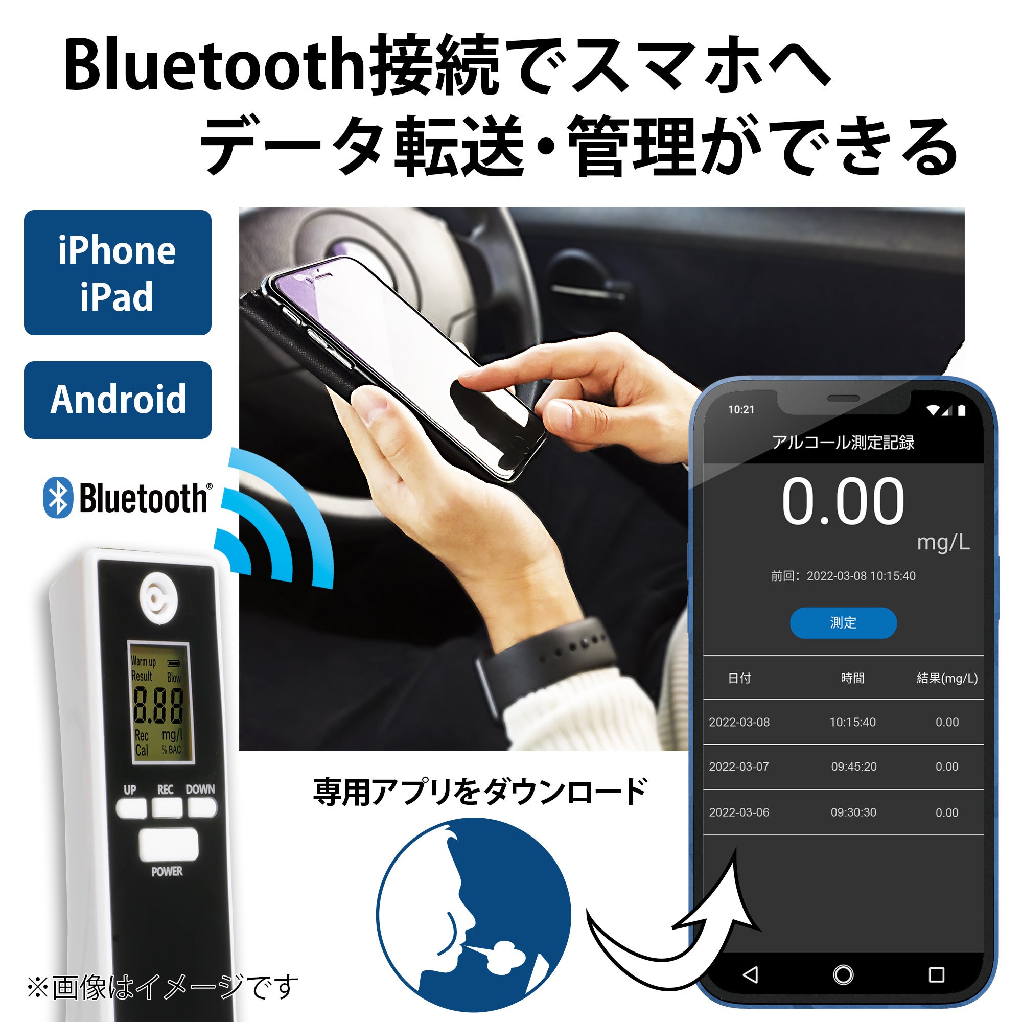 本製品はこちらの法令義務化に基づき開発した、簡単操作で個人のアルコール濃度を検知、記録もできるアルコールセンサーとなります。