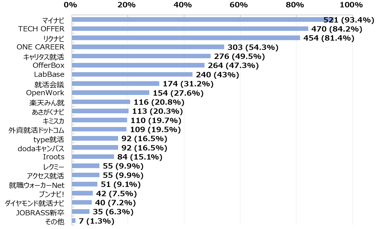 Q.既に登録した就活関連サイトをお選びください。 (n=558、複数回答)