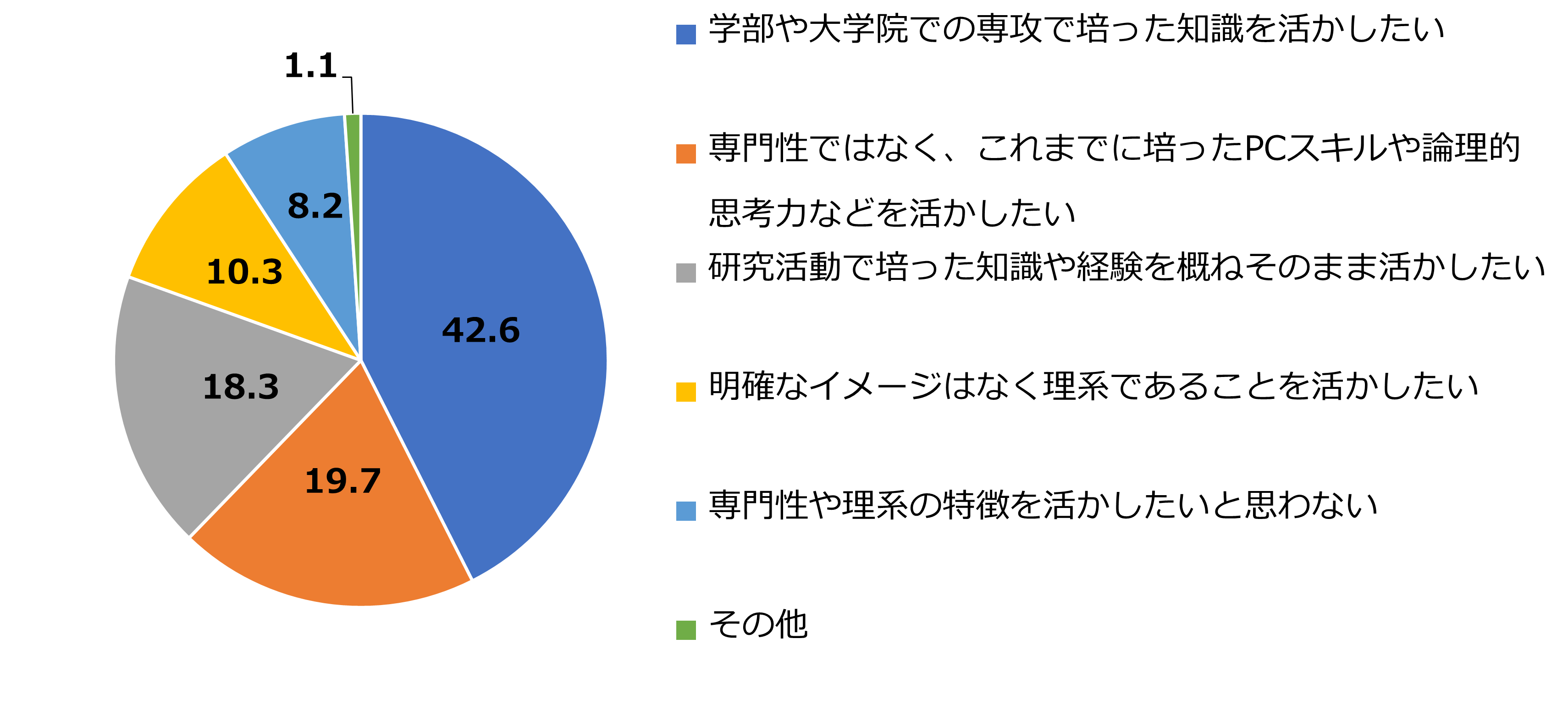 特に研究職や技術職を志す学生が多い理系学生にとっては、研究基盤・業務基盤の充実が必要条件ともなるため、自ずと「安定性」の優先順位が高くなったのではないかと考えられる。
