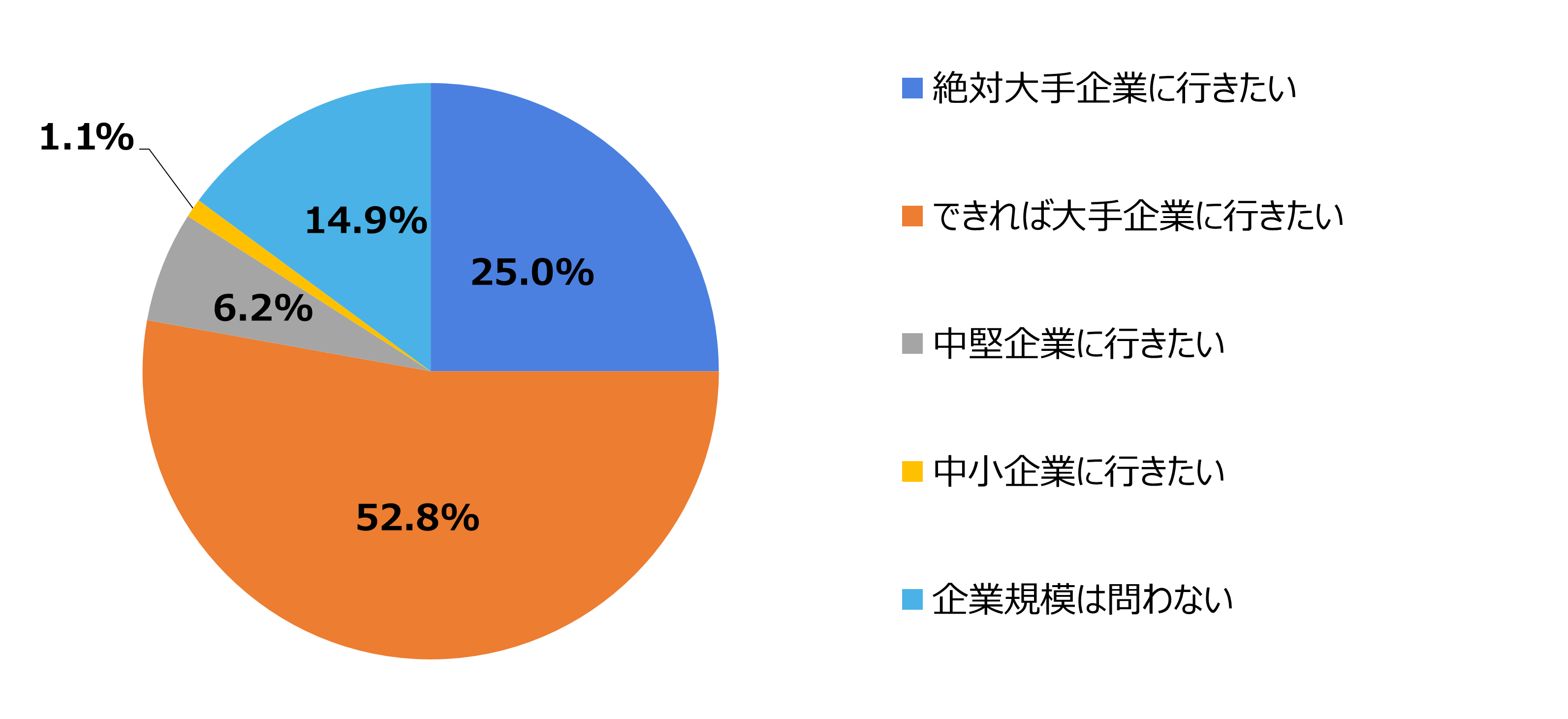 ・転職市場になってきているから、1社目が重要であると考えているため。しかし、本当に 重要なことはその企業での成果であるため、大手でなくても私のやりたいことがかなうなら規模は問わない。
