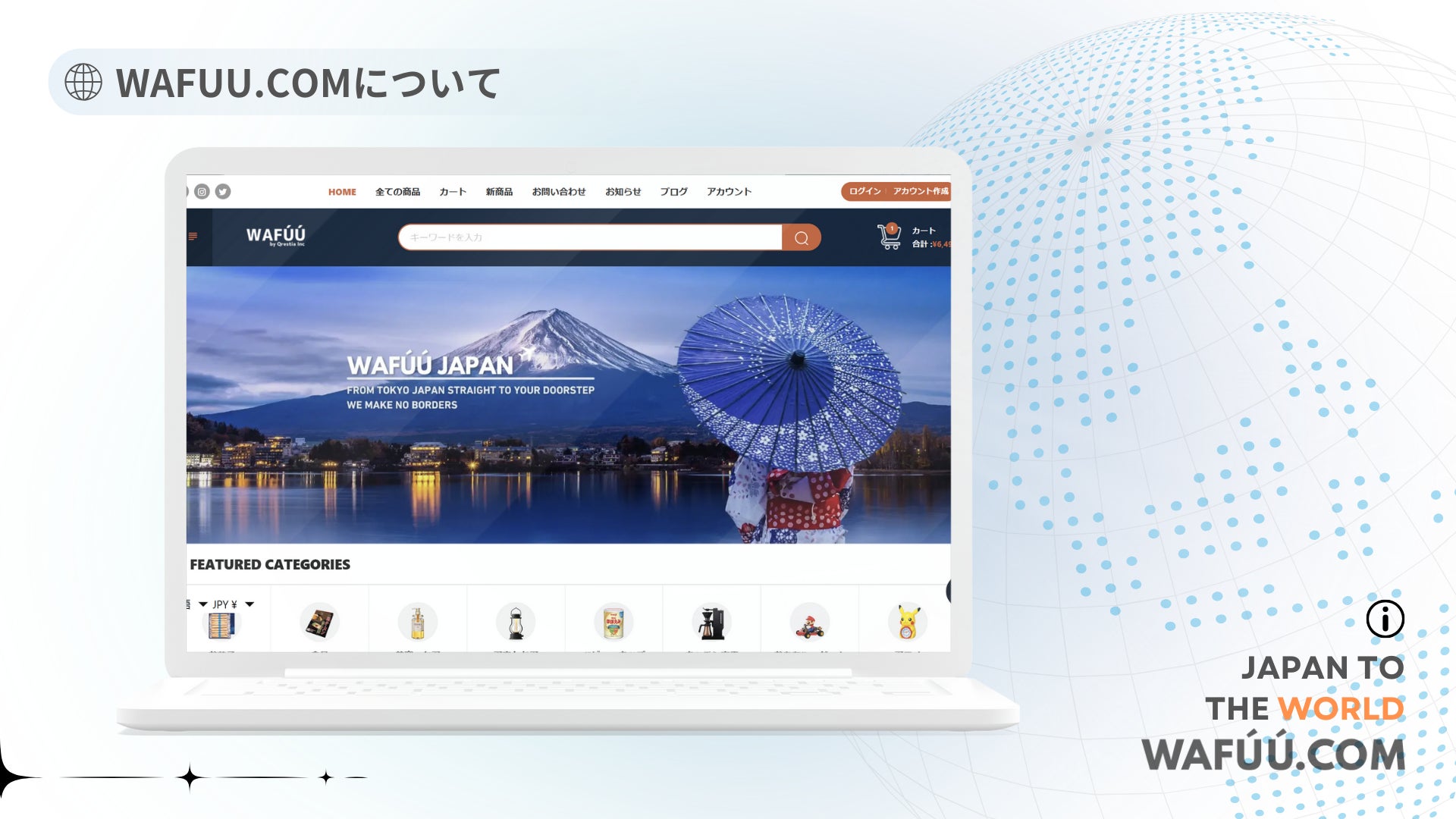 WAFUU.COMは日本の魅力ある商品を世界中の人々へ届けることを目指しています。日本のお菓子、化粧品、サプリメント、家電、食品、アニメ・ゲーム関連グッズ、ガジェットなど、幅広いジャンルの商品を取り扱い、現在21言語に対応。さらに、多通貨決済や数十を超える決済手段など、世界中のユーザーが利用しやすい支払い方法を積極的に取り入れることで、ボーダレスなショッピング体験を提供しています。