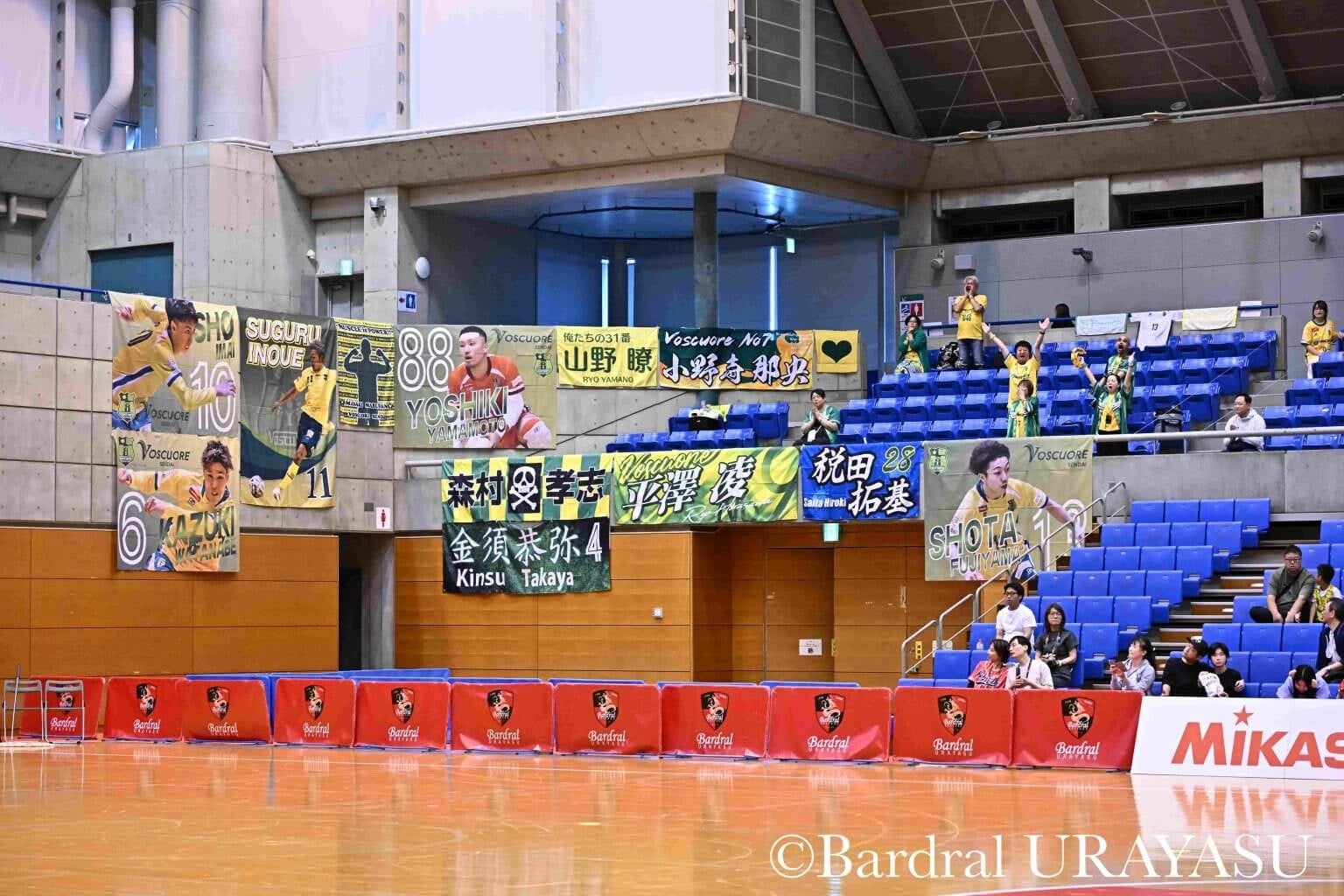 横断幕掲出時間につきましては、開場から試合開始前までの時間となります。掲出の際には、お近くのスタッフまでお声掛けください。