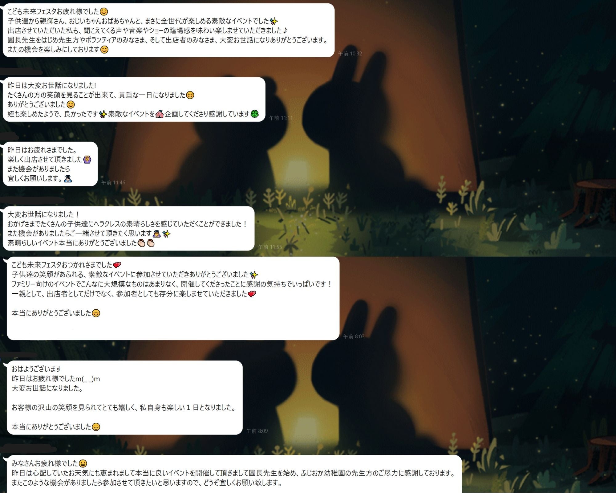 当日出店していただいた方々からの実際もらったありがたい感想を抜粋して紹介いたします。