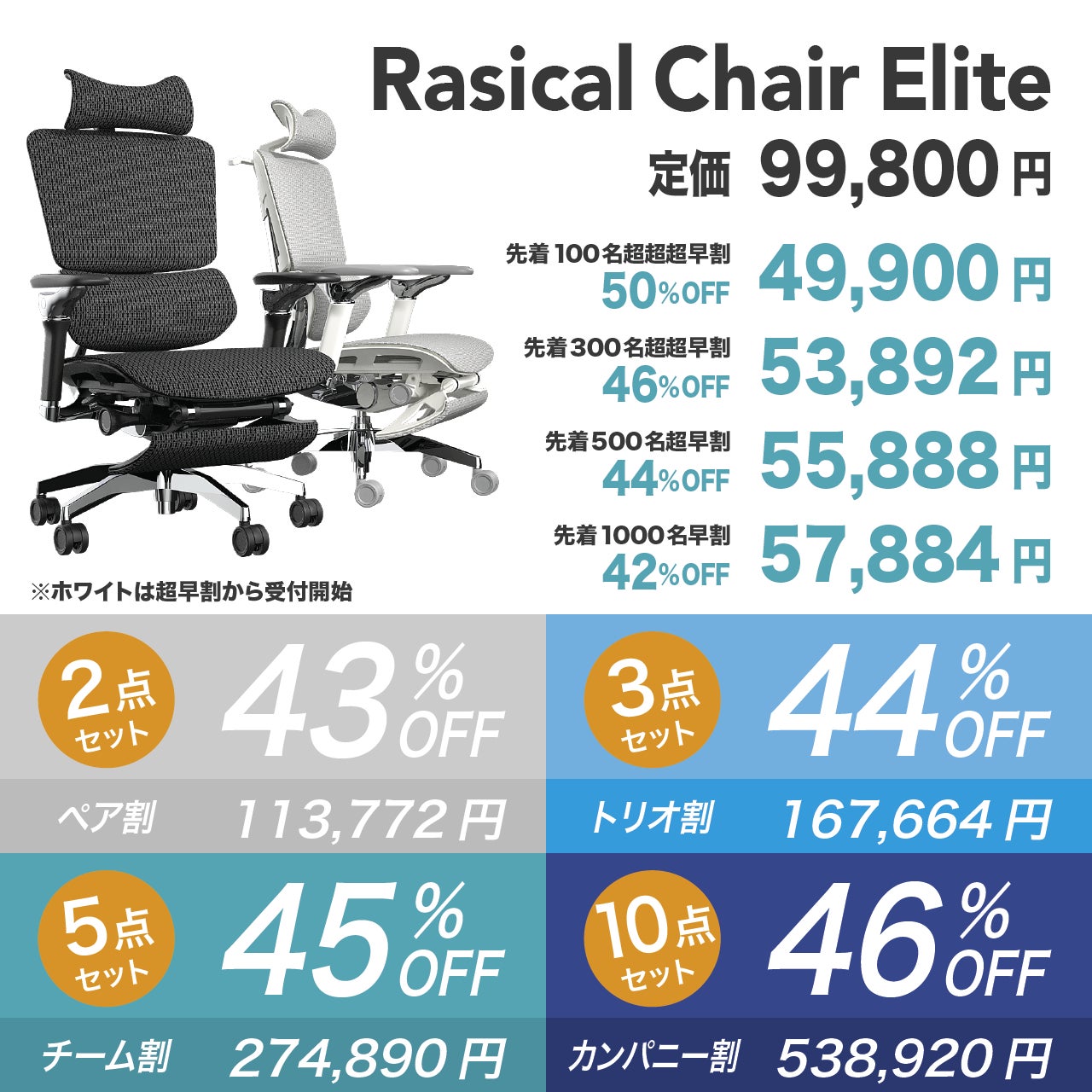 先着100名様最大50%OFFの49,900円(税込)となっておりますが、どの価格帯でもアルミ合金仕様のチェアとしてはありえないくらいお得な価格になっております。
