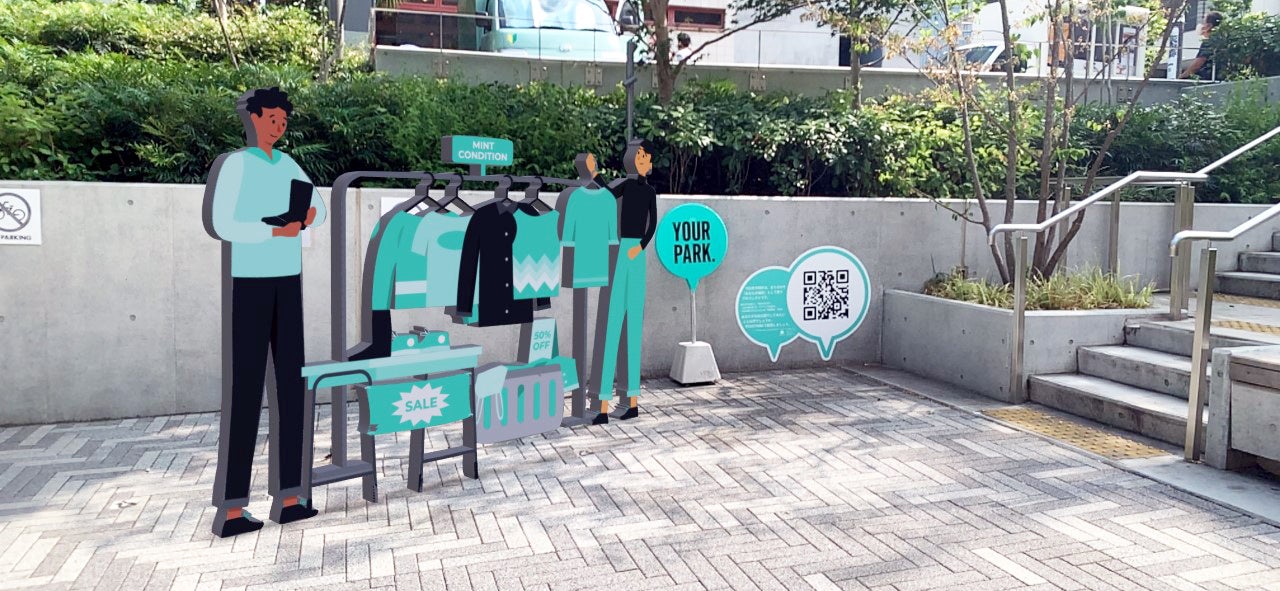 YOUR PARK は、日建設計が手掛ける、公共空間の管理者と「公共空間を使いたい人」とをつなげるシステムです。Park-PFI制度の創設やコロナ禍の影響により、近年全国的に公共空間活用が注目されていますが、公共空間を使いたい人にとっては、場所の貸出窓口や貸出ルールが不明確といった課題があります。そこで、公園内にQRコードを設置し、そこから公園管理者に活用アイデアや公園に対する要望を伝えられるようにすると共に、活用した場合の風景をAR(拡張現実)で可視化することで、公共空間の活用促進を図るシステムを企画開発しました。YOUR PARKは比較的手軽に設置が出来るため水平展開可能であり、様々な公共空間の活性化に寄与することを狙っています。