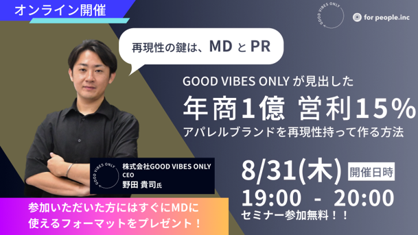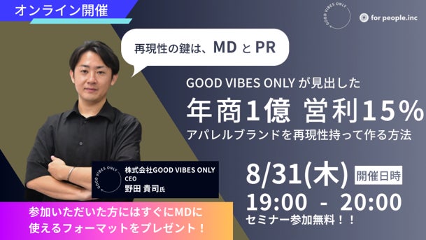 【8月31日(木)無料webセミナー開催】年商1億越えD2Cの必達方程式〜32ブランドを成功させたMD×PRの連動ノウハウ「アパレルECアカデミー特別講義」を開催。