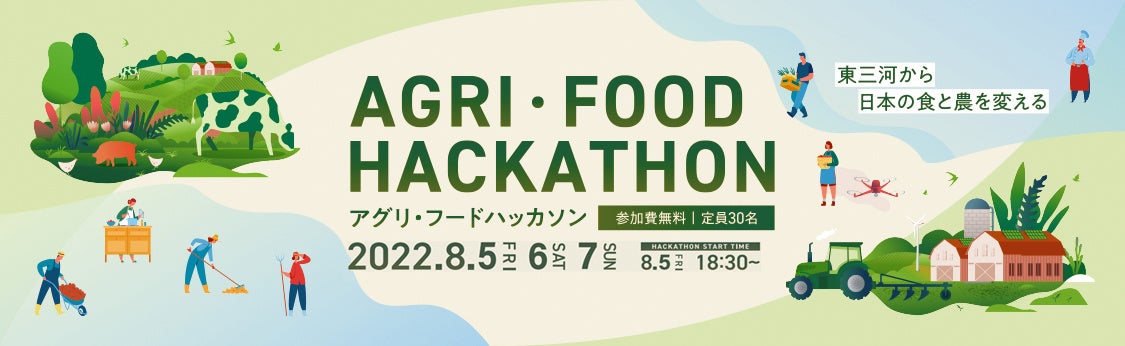 高い農業生産額を誇る愛知県東三河地域で、農業や料理の現場やその流通などの課題を解決するハッカソンを行います。ぜひ、ご参加ください。