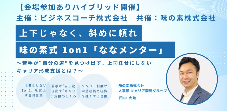 【無料/ハイブリッド開催】味の素社が導入する「ななメンター」とは? 上司任せにしない若手のキャリア形成支援を徹底解説!