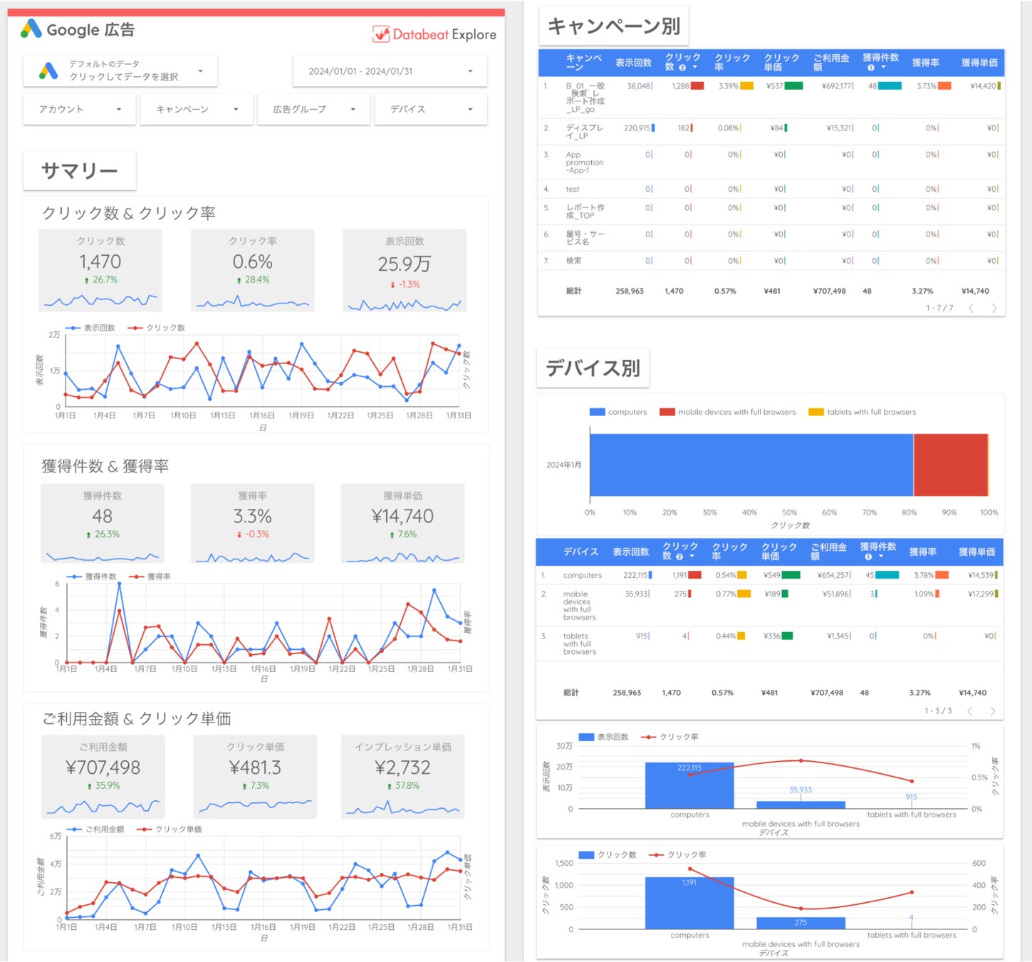 ・デバイス別(表示回数/クリック数/ご利用金額/獲得件数)