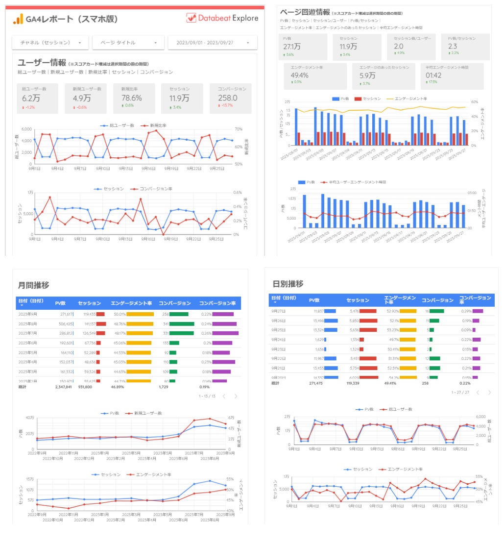 そこで広告レポート自動化ツール「Databeat」では、2024年2月9日にどなたでもご利用いただけるGoogle広告とGA4のデータをLooker Studioでまとめて可視化できるオリジナル無料テンプレートの無料配布を開始いたしました。