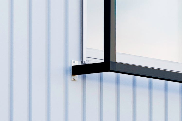 縦横の寸法をすべてサイズオーダーで製作するため、フレームが窓サッシと一体の立方体のような印象を与えます。