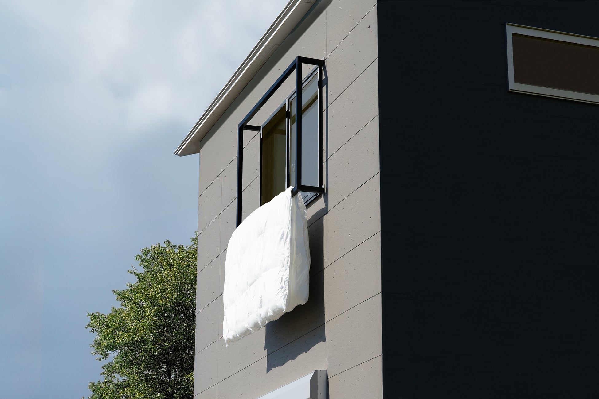 お布団を干す窓は日当たりが良いはず。SCUAがあることで太陽の良いとこ取りができます。