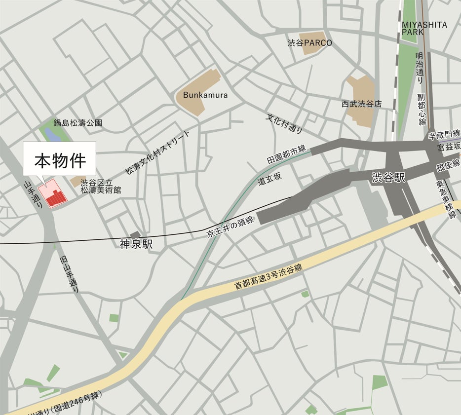 ・京王井の頭線「神泉」駅 徒歩6分 ・JR、東急電鉄、東京メトロ、京王井の頭線「渋谷」駅 徒歩11分 |
