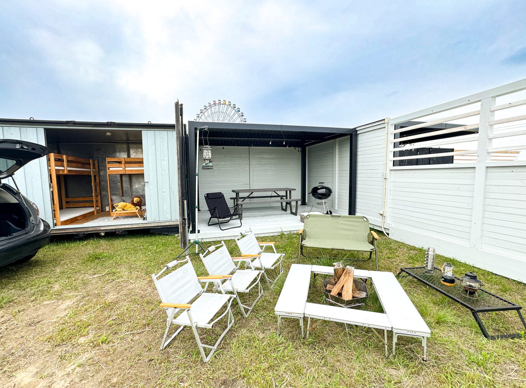 2段ベッドを2台設置したコンテナをご用意しているので、雨が降っても安心してお過ごしいただけます。
